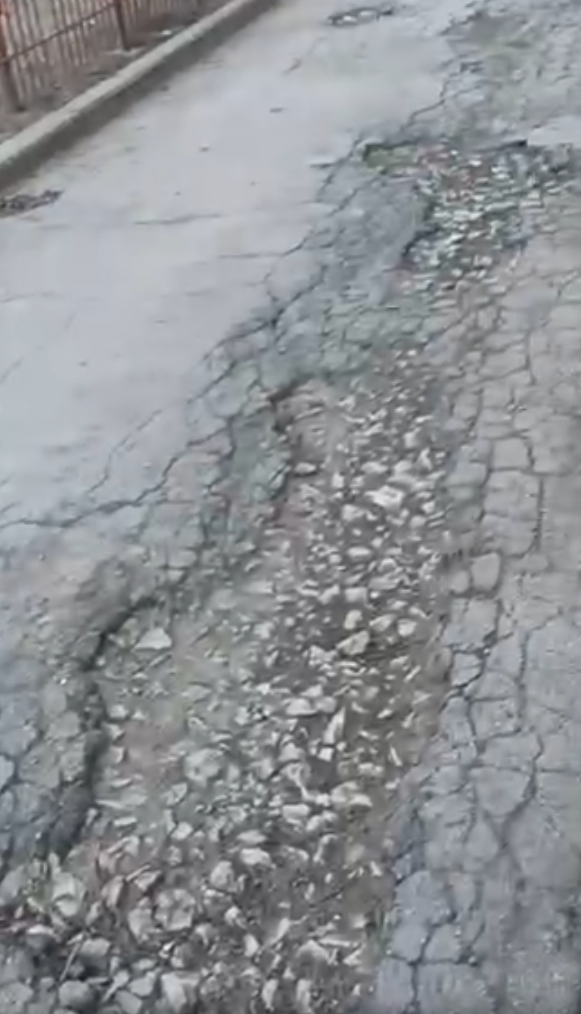 Вскоре появляются трещины и ямы, и дорога снова становится небезопасной.